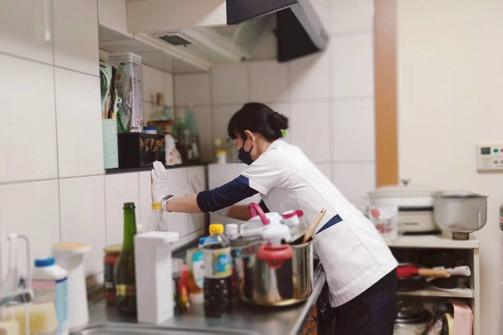 家事代行/買い物 家事代行お掃除を時間内に機敏に進めていきます。集中的に箇所のお掃除なのか全体の片付け掃除なのかご要望を丁寧にヒアリングをさせていただきます。 家事では高所作業や、 ハウスクリーニング業のような部品の取り外してのお掃除はご遠慮いただいております お買い物では、籠一つ分の量を目安に1時間としておりますが、要相談とします。 家事代行の特徴 お買い物代行(サポート代は1時間分の料金) 近隣のショップにて対応致します。買い物籠に入る量を目安とし、気温の高い夏などは、生ものや傷みやすい食品はご遠慮いただいております。ご希望のお品がない場合には、代替え、若しくは購入せずに終了なのか、お買い物前のリスト頂く際にご確認いたします。 各ご家庭に合わせた効率良い日常的なお掃除とご提案 綺麗を保てるよう、定期的なお掃除がおススメです。普段生活している中では、中々気付きにくい、箇所のお掃除なども、プロの目線からご提案させていただく事があります。思わぬ部分までキレイにしていく事で心からスッキリ気持ち良い空間作りをご提案致します。 プライベートな空間にも配慮した気持ちの良い対応と丁寧な作業 お洗濯物や寝室のお掃除などお客様にとってプライベートな空間やデリケートな部分に関して、しっかりと事前のヒアリングを行い、丁寧に確認を行った上で作業致します。 お問い合わせ・ご予約はこちら キッチンのお掃除の様子